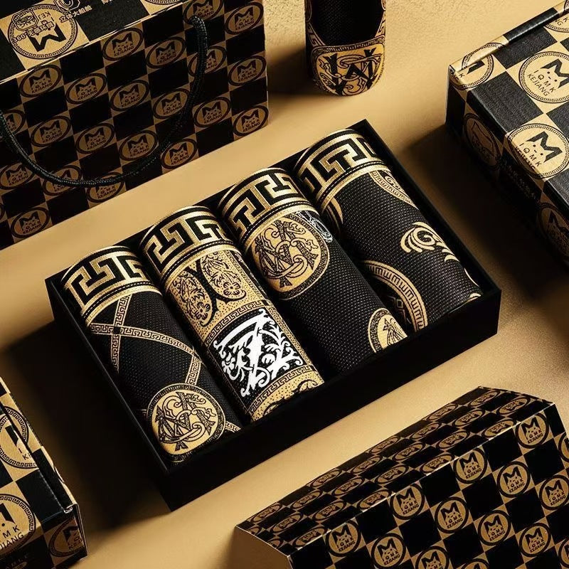 Con detalles premium y patrones sofisticados (diseños Gran Muralla / Caballero) que transforman unos boxers básicos en una prenda elegante. La rica combinación de colores mantiene su intensidad lavado tras lavado.