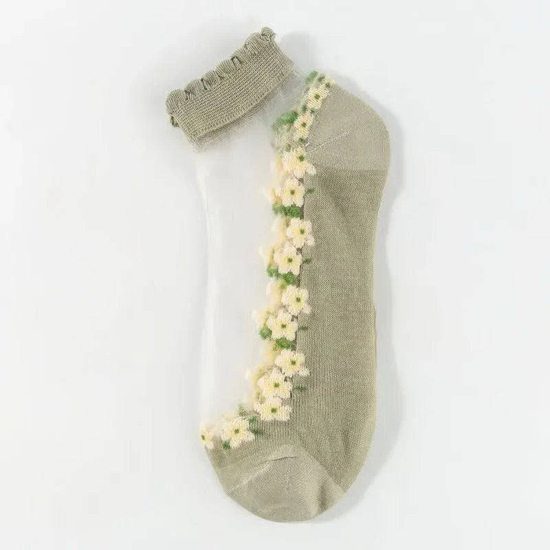 Dale un toque dulce y elegante a tu look con las Medias LaceBrezzee™. Su diseño con encaje floral transparente realza tu estilo con ligereza y romanticismo, mientras su ajuste suave evita que se bajen para brindarte comodidad y seguridad todo el día.